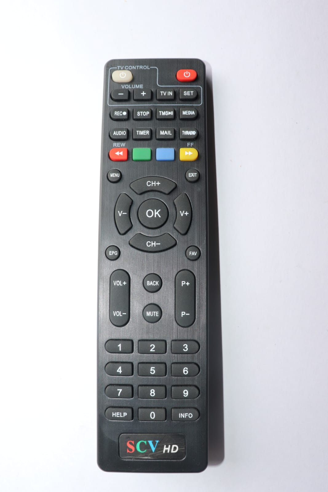 The RR SCV HD Set-Top Box Remote is a universal remote designed for use with SCV high-definition set-top boxes, commonly found with Tamil Nadu’s cable services. It features a durable and ergonomic body with a user-friendly keypad, supporting all essential TV functions such as power on/off, channel selection, volume adjustment, mute, menu navigation, and input switching. The remote operates via AAA batteries and offers efficient, responsive control, making it suitable as an original replacement or backup for SCV HD set-top box users who need dependable performance for managing HD cable TV viewing.